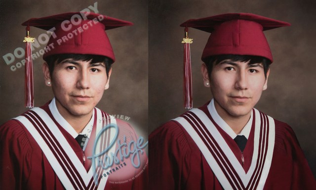 It took me 4 hours to remove the words and logo from this grad portrait. The parents were thrilled with the results. They also have learnt a lesson for the next child that will graduate .